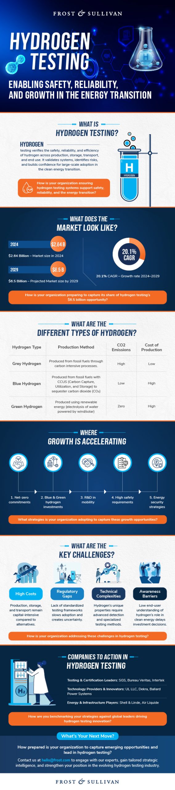Frost & Sullivan’s recent analysis on hydrogen testing unpacks this emerging ecosystem in depth. The findings are both eye-opening and encouraging for companies looking to secure their place in a market set to reach $6.5 billion by 2029, growing at an impressive 20.1% CAGR.